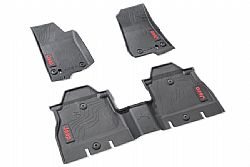 Rugged Aesthetic: Available in black, each mat is adorned with a terrain-style pattern and the iconic Jeep logo on the front mats, enhancing the rugged look of your Wrangler while providing functional benefits.