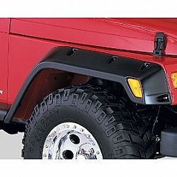 With their recessed stainless steel bolts and massive presence, Pocket Style® Fender Flares are a Bushwacker original and an off-road icon. They're custom-designed for your Jeep Wrangler to complement oversized tires and high-clearance lift kits. You can mount them right out of the box, with their tough, OEM-style matte black finish - they're UV protected so they won't chalk. Or, paint them to match or accent the body color, for a factory-custom look.Pocket Style® Fender Flares are made in the USA from our thick, proprietary Dura-Flex® 2000 TPO. Its the thickest, most flexible material available, tailor-made for added durability and flexibility on the trail. Despite their hard-core bolt-on styling, Pocket Style® Fender Flares install easily, with no body-side drilling required. When you need maximum tire coverage with minimum time and effort, it's in the pocket. Pocket Style® Fender Flares from Bushwacker.