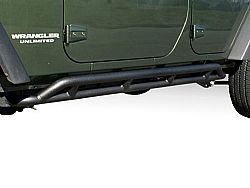 Rugged Ridge brings to you these stunning powder coat finish Rocker Guards designed to add protection under the side of your Jeep while adding a special side hoop to block those large outcroppings. This special no drill frame mounted design provides secure, bounce-free installation while keeping the mounted design points above the bottom of the frame for greater ground clearance. Each RRC Rock slider mounts to your Jeep using a simple bolt on frame mount design for ease of installation and extra durability.