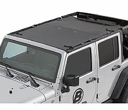 Bikini Tops are great, but if you want to put your soft top back on, the Bikini Top has to come off as well as the windshield channel. Sun Bikini eliminates all that because it doesn't interfere with your regular soft or hard top, and doesn't require a separate extra-cost windshield channel. It's like an interior sun shade you never have to remove, top up or top down. It offers filtered sunlight or even complete shade with the least amount of effort. Sun Bikinis strap into factory windshield header loops and center sport bar with J-Hook attachment to the upper door bars. Installation or removal is fast and easy. And the money saved in not needing a separate windshield channel can be put toward other Bestop accessories