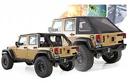The new Bowless Combo Top from Smittybilt is the most adaptable Jeep top on the market. If you?re hitting the trail and clouds roll in unexpectedly you can quickly transform your Jeep so it is protected with a weatherproof full top. When the sun returns, simply zip out the side and rear windows and you?re back