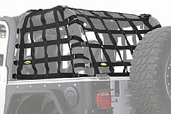 Secure your trail gear with an easy to install Smittybilt C.RES2 HD Cargo Restraint System featuring 2" military grade polyester webbing with an amazing 1,200 lbs of tensile strength. Designed not to interfere with factory mounting points for soft tops or hard tops. This restraint system provides all around coverage of the cargo area from the sound bar to the tailgate. Side and rear curtains included. The nylon reinforced buckles make it quick to release the access or cargo, and the black oxide grommets are a great way to hook up accessories.