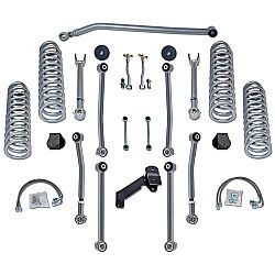 The Super-Flex Suspension System is designed for enthusiasts looking for the best short arm suspension system that retains the factory mounting locations. The Super-Flex system features great ride quality and phenomenal performance. Features include Teraflex Alpine IR adjustable upper and lower control arms, replacement lift springs, extended bump stops, longer front and rear stainless steel brake lines.