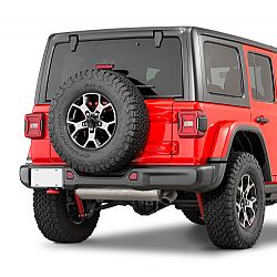 Rear off-road Bumper, same as production, matches front Rubicon bumper for the JL Wrangler. Bumper is steel with black, e-coated finish. The rear bumper design allows the use of production trailer hitch and tow hook. Can be used with both the 2-Door and 4-Door JL Wranglers.
