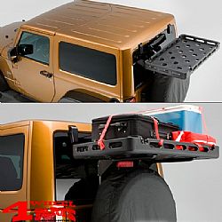 When combined with Bestop Universal Rack Tray this handy adjustable Bracket allows you to store up to 23 kilos of gear above the spare wheel on the rear of your Jeep