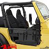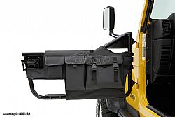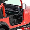 Heavy duty 1-1/4 tube construction provides exterior protection yet ventilation. Large heavy duty storage pockets can be positioned for easy access inside or outside of the vehicle. Armrest padding designed in the storage pockets. Optional door enclosure kit converts the Element door for cold weather usage and paint match to the original Jeep® color. Easily accepts OEM mirror. No drilling required for installation. Includes two lower Black door frames for front doors only, paddle handles & fabric pocket covers.