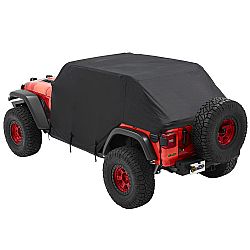 Bestop All Weather Jeep Trail Cover protects the cab, windshield and interior of any Jeep from the harsh effects of sun, wind and rain. The Bestop Trail Cover is the only cab cover for Jeep that also includes door opening protection flaps to protect the interior when trail doors, tube door or no doors are in use. Comes with stuff sack for storage and fits over other Bestop exterior accessories. Adjustable straps are designed to provide a snug, tight fit.